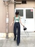 大川まなみ(EMODA)のデニムパンツ「【SET UP着用可能】ベルトフリンジジャストウエストジーンズ」を使ったコーディネート