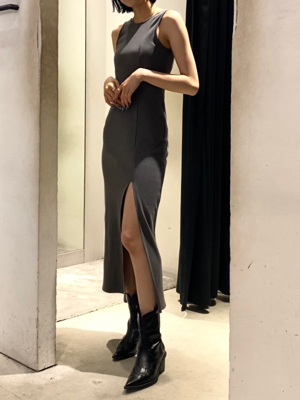 大川まなみ(EMODA)のワンピース「スリットリブカットワンピース」を使ったコーディネート