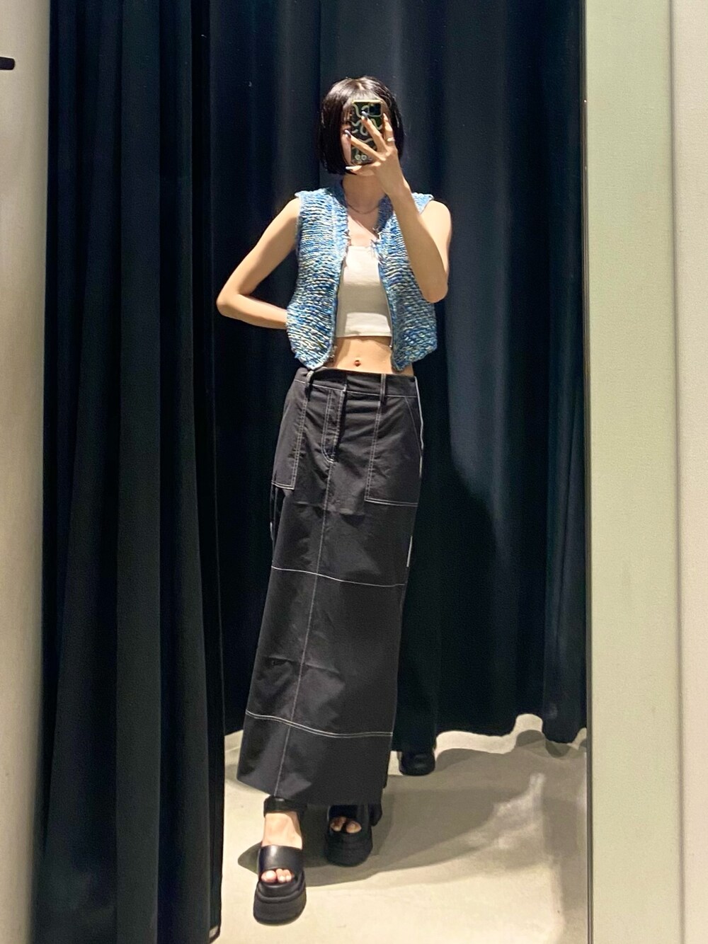 【差し色コーデ🩵】 〈トップス〉→身長170cmでこの丈感です!前のジップを閉めると、トップスとしても着て頂けます🙆♀️ 生地感は、チクチク感無く着て頂けます♪ 〈インナー〉→身長170cmで、三つボタンのボトムと合わせた時にインしなくても良いくらいの丈感です! カップが、しっかり縫い付けられてるので洗濯機に回してもカップだけ飛び出る心配ないです! 〈スカート〉→身長170cm/骨格ナチュラルでこの丈感です! 両サイドに、ファスナーが付いておりスリット具合をお好みで調整していただけます🙆♀️ 生地感もナイロンで、分厚過ぎないので真夏でも着れます♪ 〈サンダル〉 →私は甲高の幅狭で、普段25.0〜25.5cmの靴を履いていて、着用時はLサイズ履いてます。クッション性があるので、歩きやすいです♪ 傾斜がほとんどないので、1日履いても疲れにくいです!