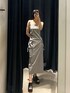 【夏のカジュアルワンピコーデ🩶】 〈ワンピース〉→身長170cmでこの丈感です! ウエストがクシュっとしているので、細見え間違い無しです🌟 丈感も変えて頂けます◎ 〈インナー〉→身長170cmで、三つボタンのボトムと合わせた時にインしなくても良いくらいの丈感です! カップが、しっかり縫い付けられてるので洗濯機に回してもカップだけ飛び出る心配ないです! 〈サンダル〉 →私は甲高の幅狭で、普段25.0〜25.5cmの靴を履いていて、着用時はLサイズ履いてます。クッション性があるので、歩きやすいです♪ 傾斜がほとんどないので、1日履いても疲れにくいです!