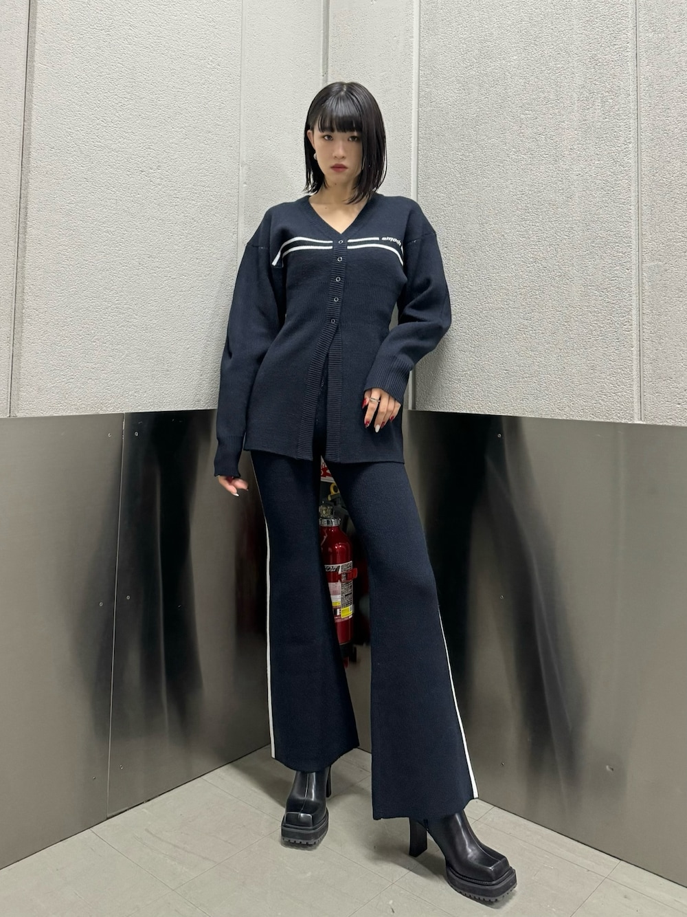 大川まなみ(EMODA)のブーツ「タンクストームサイドゴアブーツ」を使ったコーディネート