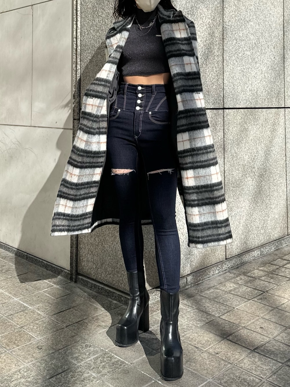 大川まなみ(EMODA)のブーツ「トゥーカバーボリュームブーツ」を使ったコーディネート