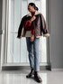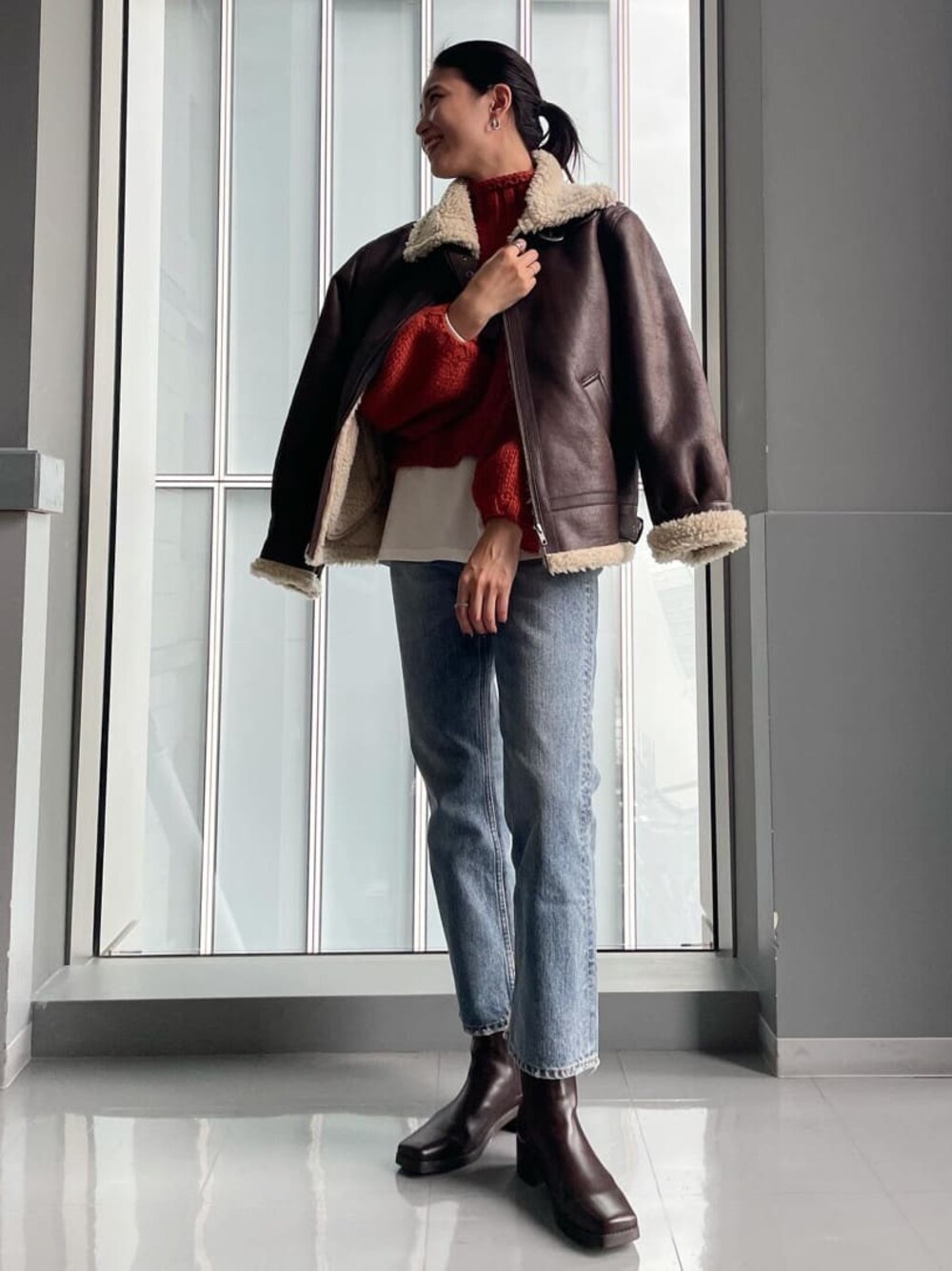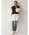 (denim)細身シルエットのストレートデニムで脚が綺麗に見えて美脚に♡ (knit)袖のボリュームが可愛くてショート丈なのでハイライズのボトムスとも相性抜群です!