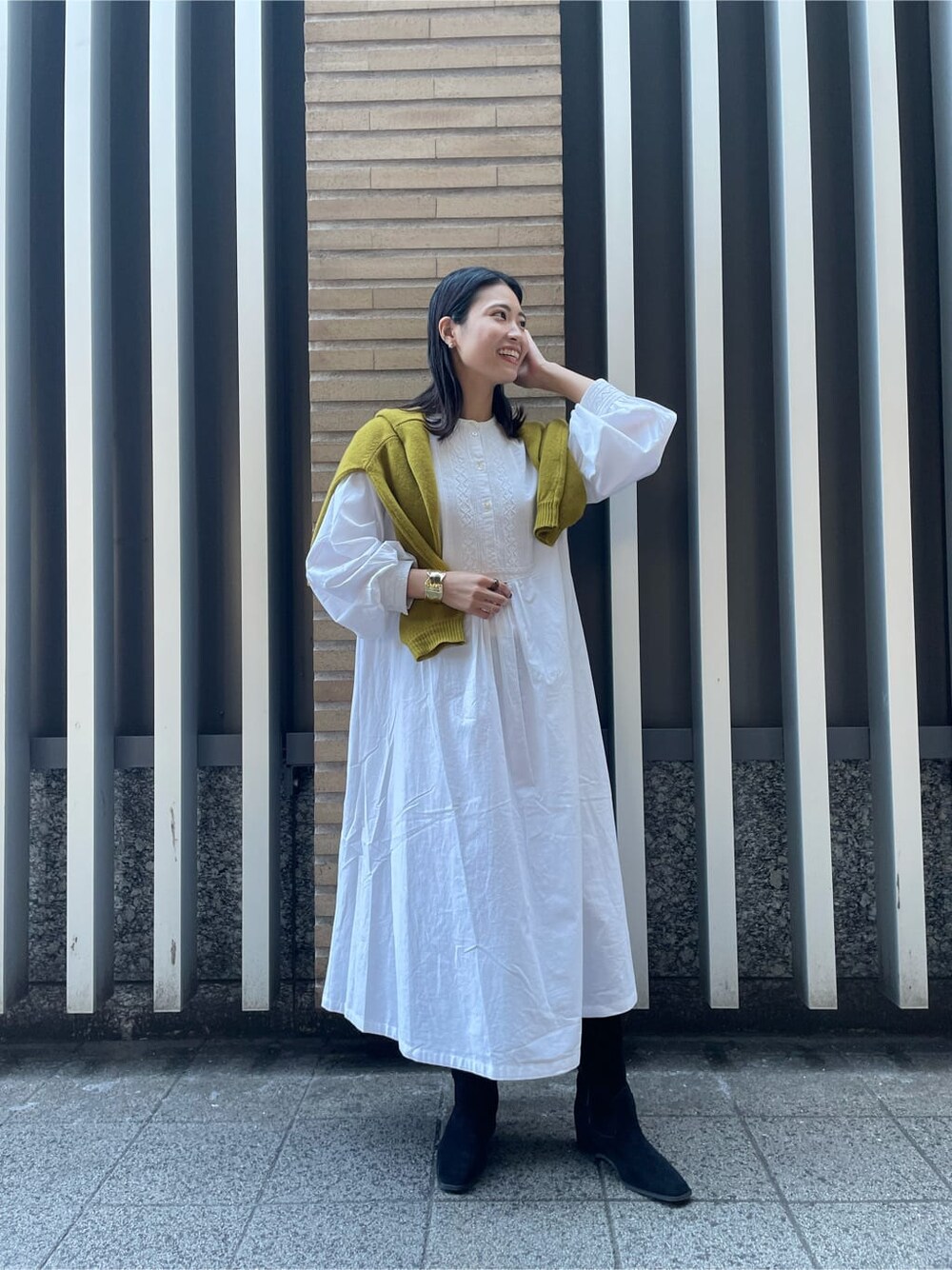 インドメイドらしい繊細な刺繍が胸元と袖口にあり1枚で映えるワンピースです♡ しっかりとした生地感でこれからの時期はインナーにタートルネックニットをいれると長く着ていただけます!