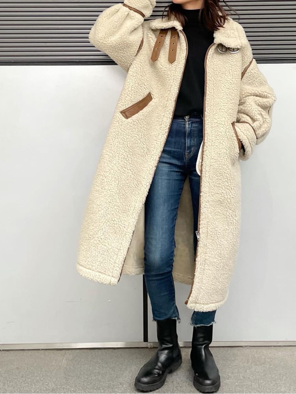 (コート)ロング丈で首元も締めることもできるのでとても暖かいです! パイピングがポイントになっておりデニムとあわせるだけでコーデがはえます!