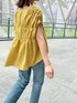 (ブラウス) ゆったりとしたサイズ感でギャザーが入ってるのがポイントのブラウス!麻素材なので梅雨時期や真夏にベタベタせずにさらっときていただけます! 肩に落ち感があり二の腕が隠れて華奢見えします!