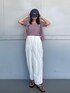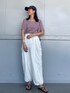 (トップス) フィットシルエットですが体のラインを拾いすぎないので別々でも着回しやすいです♡伸縮性もあり綿素材でサラッとしてますよ✨ (パンツ) 軽い着心地で夏にもぴったりですが、ロンTeeやトレーナーとあわせて秋口に着るのも可愛いです✨