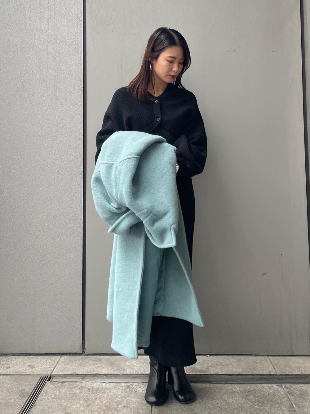 川副優佳(Ungrid)のチェスターコート「スライバーチェスターロングコート」を使ったコーディネート