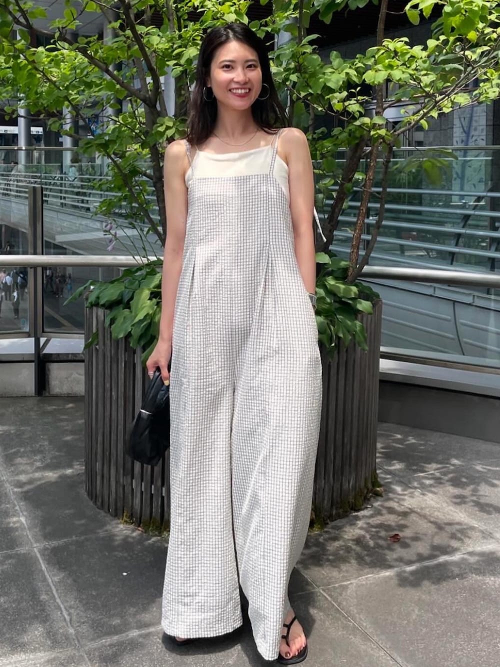 川副優佳(Ungrid)のつなぎ/オールインワン「チェックルーズキャミロンパース」を使ったコーディネート