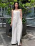 (ロンパース) 肩紐が華奢でスクエアネックなので大人な印象で着ていただけるロンパース♡ 見た目もですが生地感もラフで涼しげなので夏に一枚持っていたら大活躍間違いなし!