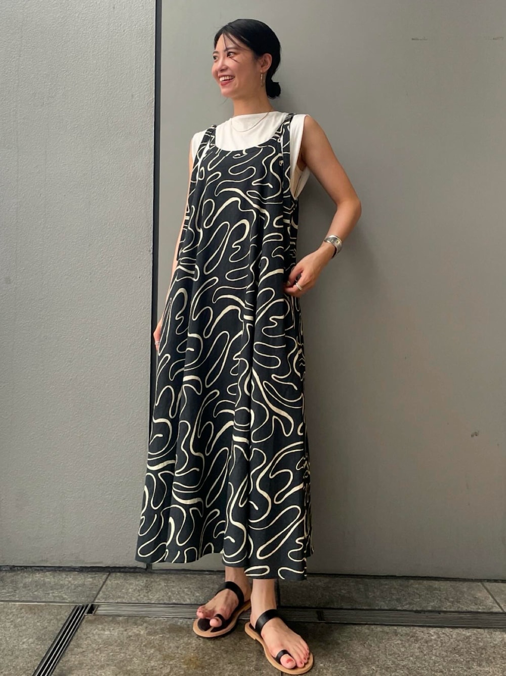 川副優佳(Ungrid)のワンピース「リネン混ショルダーデザインキャミワンピース」を使ったコーディネート