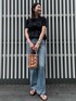 【脚長効果抜群デニムコーデ👖】 色味や裾のダメージ感が古着っぽくて可愛いデニム♡ 裾にかけて緩やかにフレアシルエット、細身なので脚がすらっと見えます!生地も柔らかいので夏にもぴったりです♡ ビスチェセットTeeはシアー素材で黒も涼しげに着て頂けます♡カジュアルにもレディライクにも着回し抜群です♡