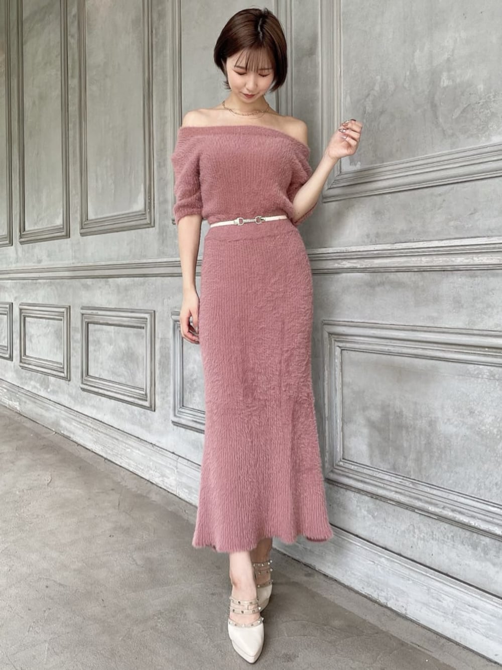 RESEXXYの秋冬と言えばシャギーシリーズ♡【ワンピース】今年も発売シャギーワンピ!今年の着心地は全身シャギーなのでタオルケットのような優しい肌触りです♪ゆるっとオフショルで着るのが女の子らしくて可愛いです♡ピンクは私のリアルバイアイテムです!!【ベルト】シャギーワンピにベルトはマストアイテムです!ウエスト位置をしっかり固定してくれるのでオフショルにした時に生地自体が下がりません◎【アウター】毎回好評頂いておりますキルティングがジャケットに♡袖部分にチャックが着いており、取り外しが可能なので長袖とノースリーブの2wayでお使い頂けます!軽い生地感なので9月から着れちゃうアウターです♪【シューズ】RESEXXY定番のスタッズシリーズ。クッション性に優れており長時間履いても靴擦れや痛みの心配がなく、ピンヒール初心者さんにも履いていただけます◎ 私も店頭でずっと愛用しているオススメアイテムです♡