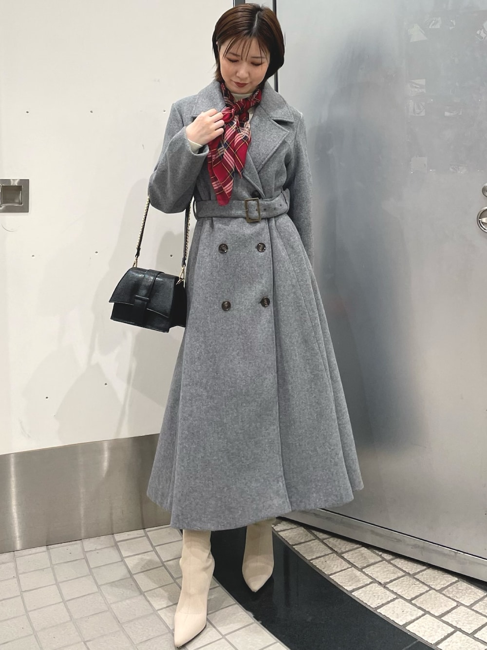 去年の即完売商品!!しっかりと暖かさのある人気コート♪【アウター】フレアデザインが自慢の美シルエットコート♡長さもあり162cmの私でも足首隠れる丈感でした◎【ワンピース】大人っぽく着れるチェック柄♪ニットでは無いので伸縮性は無いのですが、Iラインのシルエットが綺麗に映ります♪【ブーツ】ストレッチ性抜群なニットブーツ。馴染みよくずっと履いていても疲れにくかったです♪着脱がスムーズな点も◎【ベルト】骨格ウェーブさんはウエストマークしてあげるとより細見えします♡【バック】コンパクトなサイズ感がどんなコーデにもマッチします♪スニーカー合わせでお出かけにも◎