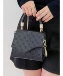セットアップの気になる着回し術♡ブラックでまとめたワントーンコーデ♪【トップス】可愛らしい小さめの襟がお気に入りポイント♡シンプルなデザインのボトムスと相性が良いです◎【スカート】台形型のミニスカートは骨格ウェーブさんおすすめアイテム!サイドに広がるシルエットで太もも周りをカバーしてくれます♪【バック】高見えしてくれる同色を使用したオリジナルロゴデザイン。チェーンを付けてショルダーバックにもなります◎【ブーツ】太もも周りの内側にベルトが付いているので歩いていても下がりません◎ミニ丈はもちろん、スキニーと合わせてカジュアルな雰囲気にもお使い頂けます♪