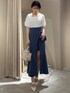 トレンドカラーのブルーを取り入れたセパレートコーデ♪【トップス】オフィスコーデにも使えるベーシックなカットソー。着用カラーのホワイトは少し透け感がある為、キャミソールの着用や肌と同系色のインナーをオススメします◎【スカート】深めのスリットがRESEXXYらしいマーメイドデザイン♪ベルト付きなのでウエスト調節が出来ます◎シーズンレスに使えるのでTシャツやニットトップスとも合わせやすいです!【バック】コンパクトでどんなコーディネートにも取り入れやすいデザイン性◎取り出し口は紐でくしゅっと縛ることが出来ます!【ミュール】RESEXXY定番のスタッズシリーズ。ミュールタイプはスタッズパンプスよりヒールが低くなる為、より日常使いがしやすいです◎普段23.5cmの私はMサイズがちょうど良く、アッパーも付いているので脱げる心配も無かったです!