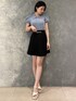 ブルベさんオススメ♪流行りのブルーを取り入れたミニコーデ。【トップス】店頭大人気ロゴニット!しっかりめの生地ですが、夏も着て頂けます◎【スカート】珍しいミニ丈のフレアスカート♡162cmでも着用できました!シーズンレスで履いていただけます♪【ベルト】ワンカラーのコーデに足すだけで簡単にアクセントになります♪ウエストが細い方は持っておくと便利です◎【サンダル】RESEXXYでは珍しい太いヒールを使用した厚底サンダル♪ヒールが高い分、かなり脚長効果を感じられました◎ 普段23.5cmの私はMサイズが丁度でしたが、足の甲が少し狭く感じたので、広めな方はワンサイズあげてもいいかもしれません♪ストラップ付きなので脱げる心配は無いです!