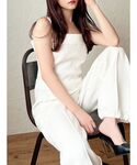 ドライブや近場のショッピングで着たいゆったりセットアップ♡ 【トップス】肩紐調節が可能で、サイドのジップで着脱が出来ます◎162cmでチラッとお腹が見える丈でした!アイボリーは透け感があるので、お肌に近いお色のインナーがオススメです♪ 【パンツ】細見えするルーズなスウェットパンツ♡ゆったりとしているデザインなので、トップスはピタッとしたものが相性良いです◎裾の内側に絞れるゴムが付いており、履くとくしゅっとした見え感になりました♪