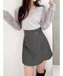 ミニ丈でも大人っぽく♡暗めでまとめたキレイめカジュアルコーデ! 【トップス】流行アイテムのアームウォーマー風トップス♡アームウォーマーは取り外し可能なので、長く愛用していただけます♪ピタッとした見え感で、インして着て頂くのがオススメです◎ 【スカパン】正面から見ると、スカートのように見えますが実際はショートパンツになっております◎シルエットがとても綺麗で、ヒップ周りをカバーしてくれる着痩せアイテムです♪ 【ブーツ】今年もニーハイブーツ発売しました!安定感抜群のチャンキーヒールです♡ふくらはぎ周りかなりゆったりとしているので、浮腫んできても安心です◎内側にベルトが付いているので、ゆるくても落ちる心配無く履いていただけます◎