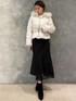 寒さ対策もバッチリな大人キレイめコーディネート♡ 【ダウン】ウエストマークのおかげで、着膨れせずにスッキリとした印象に♪ベルトを付けると、ペプラムデザインのような見え方になりマーメイドスカートやタイトスカートと相性抜群です◎カジュアルに着たい方はパンツ合わせもオススメです♡ 【トップス】お袖のシアーが可愛らしいニットトップス♪薄手のニットなので、これからの時期はカーディガンや羽織物を合わせて着て頂くと長く着用できます◎ホワイトは透け感があるので、キャミソールやお肌に近いお色のインナーがオススメです! 【スカート】店頭大人気マーメイドスカート!ラメ感がありキラキラが可愛いです♡王道キレイめコーデが完成しますよ♡ブラウスを合わせればお呼ばれ風、ニットを合わせば普段使いしやすいコーデが完成します♪ 【ブーツ】私のリアルバイブーツ!スウェードはキレイめのお洋服に相性が良く、秋冬には欠かせないアイテムです◎足首部分も柔らかいので、圧迫感なくとても履きやすいです!普段23.5cmの私はMサイズが丁度良かったです♪