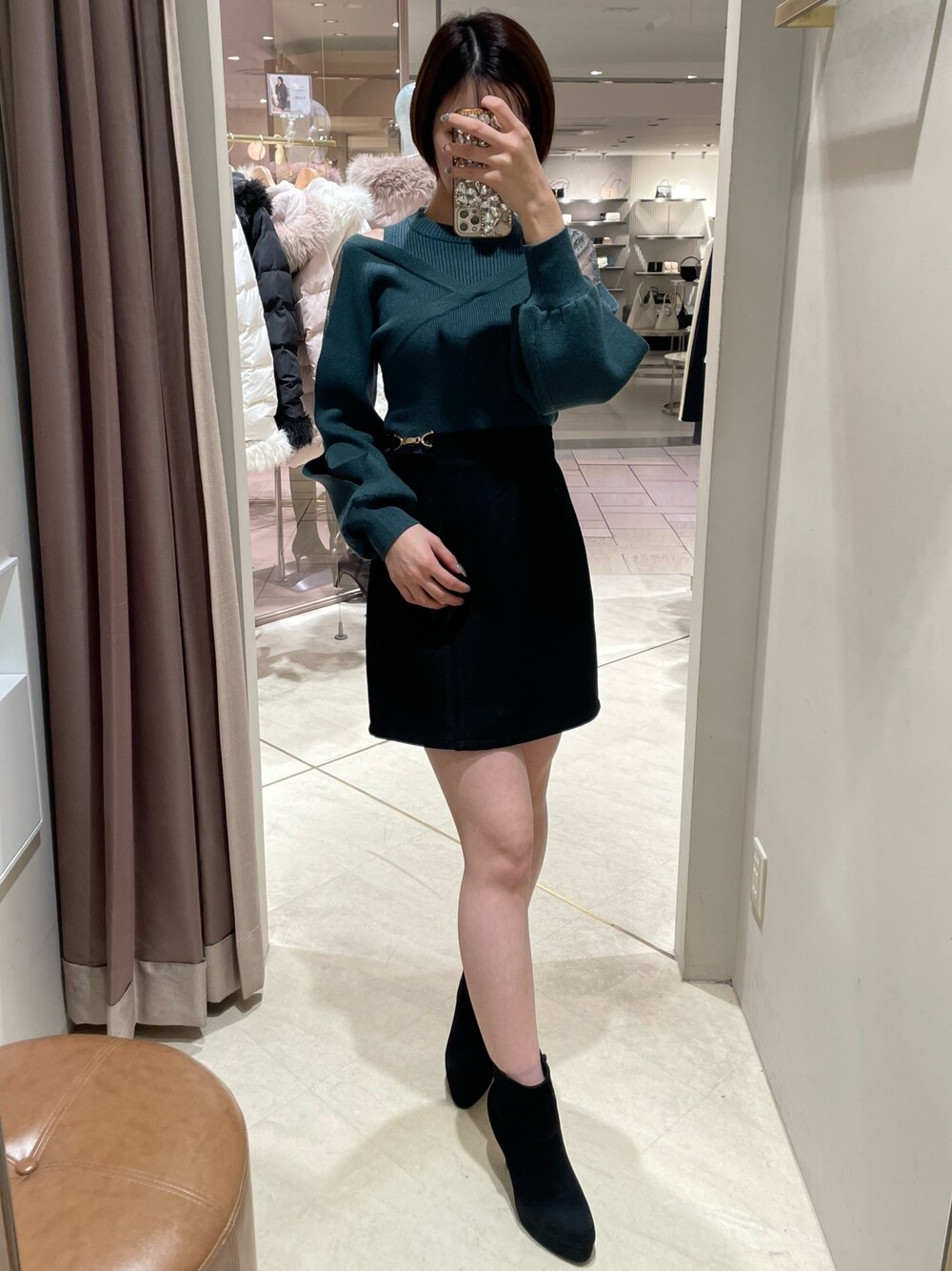 この時期着たくなるクリスマスのカラーコーデ♡ 【トップス】去年も人気頂いたレースのレイヤードデザインです!スリーブ部分は総レースの上にニットが重なっています◎普段肌見せしない方も着やすい透け感です♪ 【スカート】ヒップ周りや太ももを拾わないミニスカートです♪トップスをインして着て頂くと、ゴールドのワンポイントデザインが映えます♡162cmで安心の長さでした♪ 【ブーツ】私のリアルバイブーツ!スウェードはキレイめのお洋服に相性が良く、秋冬には欠かせないアイテムです◎足首部分も柔らかいので、圧迫感なくとても履きやすいです!普段23.5cmの私はMサイズが丁度良かったです