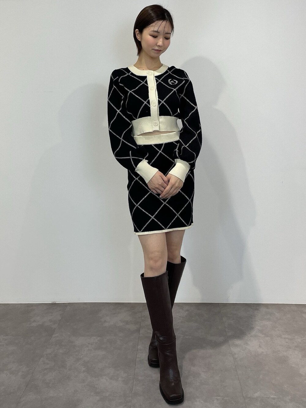 RESEXXY大人気のロゴセットアップ♡ 【トップス】ウエスト部分がゴムでキュッとするので細見えするトップスです!162cmでへそ出しまではなりませんが、丈は短めです◎ 【スカート】短すぎない丈感で、履きやすいアイテムです!セットアップで履いていただくと、コルセットデザインのように見え、脚長効果があります♡ 【ブーツ】足首がきゅっと締まっており、細見えするミドルブーツです♡私は普段23.5cmでMサイズが丁度でした◎浮腫みやすい方などは、ワンサイズ上げてみてもいいと思います♪