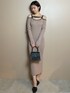ほんのり甘いピンクでデートコーデ♡ 【ワンピース】大胆なショルダー部分の肌見せが目を惹きます♡ピタッとしたリブニットで、身体のラインを拾いやすいのでインナーはシームレスのタイプがオススメです! 【バック】シンプルなゴールドデザインが高見えしてくれます♡中身はコンパクトなので、折りたたみの小さな財布がオススメです◎ 【ヒール】足首を綺麗に見せてくれるヒールです♪普段23.5cmの私はMサイズを選びましたが、ストラップが無いのでゆるく感じた方は透明なバンドを付けると安定感が増します◎