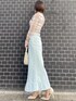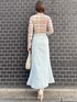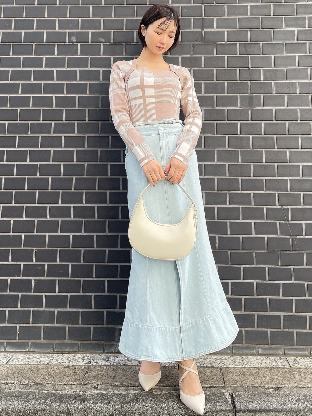 春らしさのある明るいカラーでコーディネートしてみました♡ 【トップス】半袖バージョンで大人気を頂いたデザインが復活です♡ピタッとしたシルエットですが、ラインが響きにくくとても着やすいです◎ 【スカート】人気のキレイめカジュアルが完成するアイテムです♡オールシーズン履いて頂けるのと、ニット系シャツ系など合わせやすさも万能なので重宝する1枚です◎着用しているのはMサイズで、丈感とヒップ周りのサイズ感が変わります! 【バッグ】シンプルなデザインなので、コーデの邪魔をせず合わせやすさが最大の良さです◎キレイめコーデはもちろん、ラフな日に持っても決まります♪ 【パンプス】そろそろ履きたくなるパンプスが発売♡足の甲部分が少しキュッと感じたので、足の幅が広めの方はワンサイズあげてもいいと思います◎