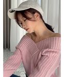カジュアルなアイテムにピンクやホワイト系の色味で甘さを足しました♡ 【トップス】肩周りがゆったりめなルーズニットです!ショート丈なので、お腹がちらっと見えます♡ハイウエストのボトムスでしたら、なるべくお腹を見せず着用も出来ます◎ 【デニム】S、Mサイズからお選びいただけるロールアップデニムです!私は162cmでSを履いてみました♪少し足首が見える丈です◎ロールアップされている部分は、縫われていないのでお好きな位置までまくって履いて頂けます◎ 【バック】シンプルなゴールドデザインが高見えしてくれます♡中身はコンパクトなので、折りたたみの小さな財布がオススメです◎ 【キャップ】大人気のNEW ERAコラボです♡顔がしっかり見えるように、浅く被ってみました◎珍しいツイード柄でキレイめアイテムに合わせやすいです! 【パンプス】ベーシックで、シーンを問わず履いて頂けるパンプスです!私は23.5cmでMサイズがジャストでした◎少しでもゆるく感じられた際は、バンドを付けていただければ履きやすくなります!クッション性があり、痛くなりにくいです♪