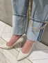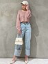 カジュアルなアイテムにピンクやホワイト系の色味で甘さを足しました♡ 【トップス】肩周りがゆったりめなルーズニットです!ショート丈なので、お腹がちらっと見えます♡ハイウエストのボトムスでしたら、なるべくお腹を見せず着用も出来ます◎ 【デニム】S、Mサイズからお選びいただけるロールアップデニムです!私は162cmでSを履いてみました♪少し足首が見える丈です◎ロールアップされている部分は、縫われていないのでお好きな位置までまくって履いて頂けます◎ 【バック】シンプルなゴールドデザインが高見えしてくれます♡中身はコンパクトなので、折りたたみの小さな財布がオススメです◎ 【キャップ】大人気のNEW ERAコラボです♡顔がしっかり見えるように、浅く被ってみました◎珍しいツイード柄でキレイめアイテムに合わせやすいです! 【パンプス】ベーシックで、シーンを問わず履いて頂けるパンプスです!私は23.5cmでMサイズがジャストでした◎少しでもゆるく感じられた際は、バンドを付けていただければ履きやすくなります!クッション性があり、痛くなりにくいです♪