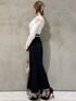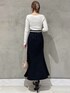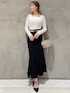 キレイめ好きさんにはたまらない♡マーメイドスカートコーデ♪ 【トップス】インナーを気にせず着ていただけるレースニットです♡キレイめスカート以外にも、スキニーにインして頂くスタイルもオススメです! 【スカート】ゆったりめなサイズ感のマーメイドスカートです♪シンプルなタックデザインが、大人っぽさを引き出してくれます♡ 【ベルト】スカートが少し緩く感じたので、ベルトを付けて調節しました◎ 【バック】ゴールドチェーンの持ち手がオシャレなアイテム♪横長のつくりで長財布も余裕を持って入れていただけます◎ 【パンプス】私が店頭で履いている新作パンプスです!クッション性があるので、ピンヒールを履いている感じがせず、驚きの履きやすさです◎足首を綺麗にみせてくれるので、ロング丈と合わせやすいです!