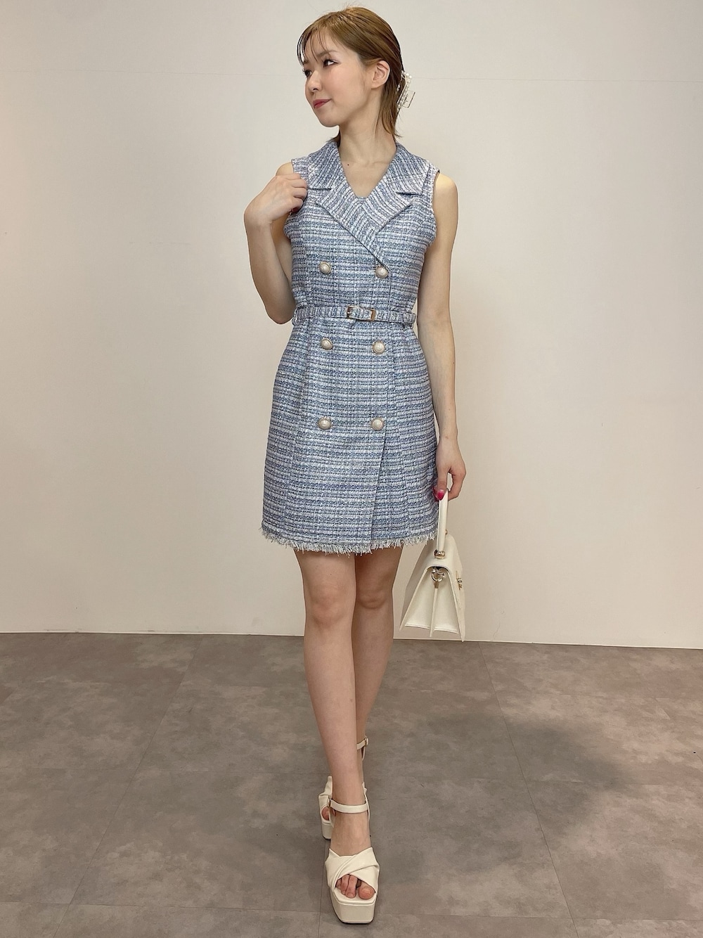 夏も着たい♡高見えツイードコーデ♡ 【ジャケットワンピース】ジャケットとワンピース、シーンに合わせてお使い頂ける2wayアイテムです♪インナーにお好きなトップスを合わせて頂き、二の腕をカバーしてあげても◎ 【ワンピース】肩紐の調節が可能になっています◎162cmで少し短めでした!ベルトをつけてあげると、丈が上がってくる防止になるのでオススメです! 【ヒール】太いヒールで安定感のあるサンダルです!傾斜がゆるやかなので、足の甲が痛くなりにくいようになっています◎23.5cmでMサイズが丁度良かったですが、つま先部分の幅が広めな方はワンサイズあげてもいいと思います♪ 【バック】シンプルなゴールドデザインが高見えしてくれます♡中身はコンパクトなので、折りたたみの小さな財布がオススメです◎