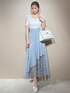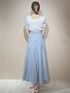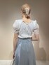 ホワイト×ブルーの透明感が可愛いスカートコーデ♡ 【トップス】光沢感のあるシアーが特別感のある1枚です♪スクエアネックなので、骨格問わず綺麗に着こなしていただけます◎ 【スカート】アシメデザインのシアーがポイントのフレアスカートです!肌見せ感が強くないので、脚を出したくない方も履きやすいと思います◎着用しているブルーは肌なじみが良く、真っ白との相性が抜群です! 【ヒール】細ベルト付きのヒールサンダルです!つま先部分が少し細く感じたので、幅が広めの方はワンサイズ上をオススメします◎パンツ系のコーディネートにも◎ 【バック】表面のキルティングが可愛いハンドバックです!コンパクトな見た目ですが、500mlのペットボトルが入る自慢の内容量になっています◎