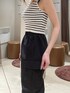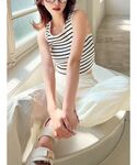 休日過ごしやすいラフなスタイルです♡ 【トップス】お腹がチラ見えするショート丈ニットです!バストで少し前の丈が上がりやすいと思います◎ニットカーディガン、デニム、シアーカーディガンなどと合わせていただくのもオススメです♪ 【パンツ】カジュアル好きさんオススメのアイテムです!軽い素材なので夏も履きやすく、Tシャツやキャミソールと合わせるコーデもオススメです◎ 【ヒール】T字のデザインのおかげで、サンダルでも脱げにくく安定感がありました!普段23.5cmでMサイズが幅もピッタリでした◎