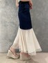 パールやチュールなど女性らしさのあるキレイめスカートコーデ♡ 【トップス】パールデザインで、首元が一気に可愛く華やかになるアイテムです!ニットなのでとても着やすく、しっかりとインがしやすい長さの丈感です◎ 【スカート】ストレッチ性の強いデニムでとても履き心地が良かったです!細身の見え感ですが、脚も上がりやすかったです♪150cm前後の方は少しだけヒールがあると安心です◎ 【サンダル】毎年大人気のウェッジサンダルです!1番のおすすめポイントは脚長効果が抜群なところです♡普段ミニ丈を着ない私でも、このサンダルを履くとミニ丈着たい!と思うほど脚がスラッとみえます♪高さがありますが、傾斜がゆるやかなので疲れにくいです◎