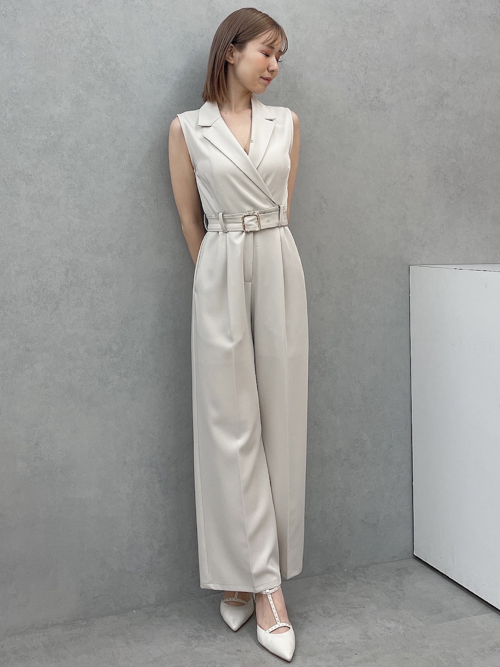 RESEXXY定番のパンツスタイルが今年も登場♡ 【コンビネゾン】162cmでMサイズを着用しております!~160cmの方は、Sサイズが丈はちょうどいいと思います◎ワイドパンツなので履き心地がかなり楽で、ヒップ周りのカバーに優れています♪ 【ヒール】スタッズのようなデザインで、私が一目惚れしたアイテムです♡ピンヒールですが、クッションが強くとても柔らかいので履きやすかったです◎23.5cmの私はMサイズがピッタリでした!