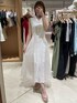 インスタリールに詳細あり♡【@moeka_rs】 【ワンピース】着用しているホワイトは膝上の裏地が入っていますが、ほんのりインナーが透けます!シアーで軽いので、ブラックでも重たさが出ず、夏場に着やすいアイテムです!左サイドにジップがあり、着脱も簡単です◎162cmが着用して足首より10cmほど上の丈感だったので、低身長さんにもオススメです! 【サンダル】毎年大人気のウェッジサンダルです!1番のおすすめポイントは脚長効果が抜群なところです♡普段ミニ丈を着ない私でも、このサンダルを履くとミニ丈着たい!と思うほど脚がスラッとみえます♪高さがありますが、傾斜がゆるやかなので疲れにくいです◎