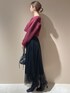 秋らしいワインが映えるコーディネート♡ 【カーディガン】トップスとしても使える2way仕様です♡お袖は1回まくってます!少しショート丈なので、ハイウエストのボトムスですとお腹隠せます! 【スカート】珍しいベロアとチュールの組み合わせです♡下半身のシルエットをカバーしてくれるので、骨格ウェーブさんや太もも気になる方にもオススメです◎ 【バック】散りばめられたストーンが可愛いミニバックです♪折りたたみのお財布や、小物類の収納はバッチリの内容量です!クシュッと縛ってお使い頂けます◎ 【ブーツ】くしゅくしゅっとしたデザインが可愛いブーツ♡とっても柔らかく脚への負担が少ないブーツです!普段23.5cmの私はMサイズがぴったりでした◎