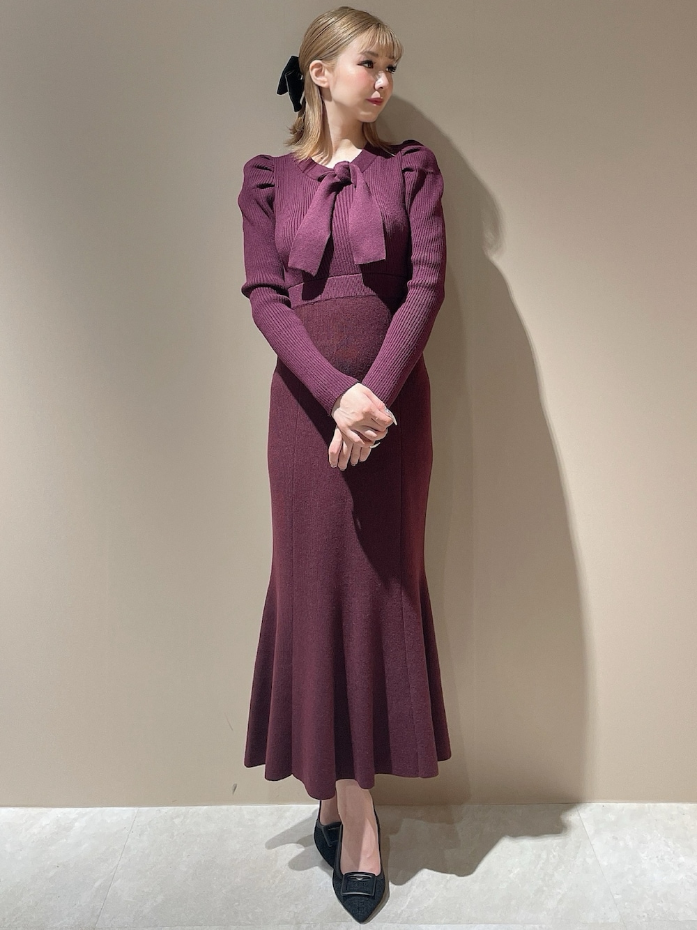 moeka(RESEXXY)のワンピース「ボウタイマーメイドニットワンピース」を使ったコーディネート