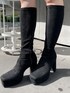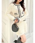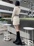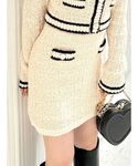 日常使いのしやすい上品セットアップ♡ 【トップス】ハッキリとしたバイカラーと白金のボタンでとっても上品に見せてくれます♡162cmが着用してちらっとお腹が見えました!白金のボタンとボタンの間には、見えないように内側にボタンがあり胸元がしっかり隠れます! 【スカート】162cmで丁度いいぐらいの短さでした!高身長さんは丈感がギリギリの見え感になると思います◎ポケットはフェイクです! 【ブーツ】細見えが叶う流行りのデザインです♪ふくらはぎにピタッとすることで脚が細く見え、美脚効果が期待できます!ソール部分にも厚みがあるので、歩きやすさ抜群です◎普段23.5cmでMサイズがピッタリでした!