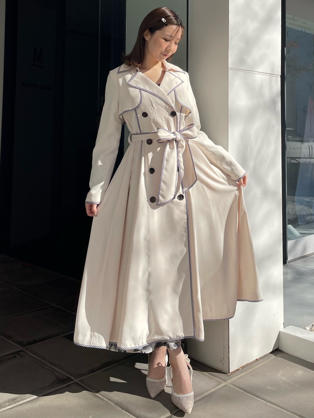 moeka(RESEXXY)のトレンチコート「パイピングデザインロングコート」を使ったコーディネート