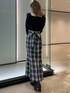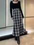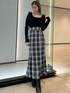 暗めのトーンで合わせた落ち着きのあるスカートコーデ♪ 【トップス】合わせやすさ抜群のフリル付きリブニットです♪インナーは気にせず着ていただけます◎マーメイドスカートなどの大人キレイめコーデもオススメです♪ 【スカート】オールシーズン着用可能なマーメイドスカートです♪生地はそんなに厚いものではないですが、裏地がしっかりしているので透け感などの心配はありません◎ 【ブーツ】高さはありますが、太めのヒールで安定感のあるブーツです!ヒール初心者さんにもオススメ◎キレイめ、カジュアル共に合わせやすいです♪普段23.5cmの私はLサイズで、浮腫んだ時のためにゆとり持って履いております!
