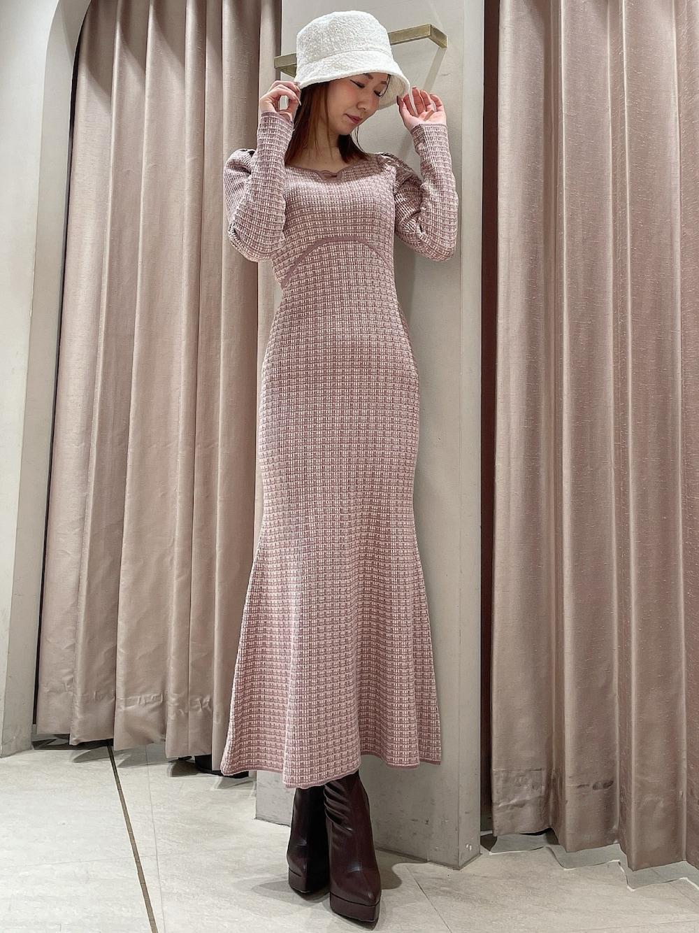 【ワンピース】高めのウエスト切り替えでくびれが強調でき、脚長効果が叶います♡細見えしますが、キツさは無いので着心地も◎です!デコルテの広さはかがんでも大丈夫なぐらいで、少し広いぐらいです! 【ブルゾン】RESEXXY毎年大人気のショート丈ブルゾンです♡ファーのみのシンプルなデザイン性なので、キレイめ、カジュアル共に合わせやすくなっております◎内側のファーがとても気持ちよく、どこで腕まくりしても裏地がファーで綺麗ですよ♪ 【ブーツ】私が店頭で愛用しているショートブーツです♡とても柔らかい素材なので、ふくらはぎが疲れにくくなっております◎普段23.5cmの私は今回Lサイズを選びました!靴下を履いて、浮腫んだ時のことを考えて少しゆとりのあるサイズを選びました♪ 【ハット】深めですっぴん隠しにもなるバケットハットです♡ツイード生地ですが、チクチク感が無いので被りやすいです!アイボリーは真っ白に近いです♪