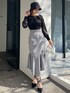 【トップス】オフショルにしても着用できる2wayトップスです!シアーとチュールの透け感が可愛らしい組み合わせです♡ウエスト部分はリブでぴたっとしているので、細見え効果も抜群です♪ 【スカート】くシュッとした立体的なギャザーが魅力的なマーメイドです♡裾はアシメデザインで、長すぎないので低身長さんにもオススメです◎Tシャツやブラウスとの着回しも◎ 【バック】スパンコールのキラキラが目立つミニバックです!ちょこっとした小物類を持ち歩くのにピッタリです♪ 【ヒール】キレイめコーデにぴったりなクロスデザインのパンプスです!23.5cmの私はMサイズが丁度良かったです!ストラップのおかげで、ホールド感がありパカパカせず履きやすいです◎ 【帽子】深めに被れるので、すっぴん隠しにも使っていただけます◎軽い素材なので、暖かくなるこれからの季節に被りやすいです!アイボリーは夏にも◎