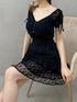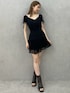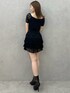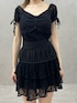 【トップス】オフショルでも、肩上げても大丈夫な2wayです!首元Vネックは広めにあきます!肩部分はレースなので、近くで見るとしっかり透けています◎その為、インナーはストラップレスのタイプがオススメです♪デニムに合わせて頂くのもぴったりです♡ 【スカート】インナーパンツ付きで、この短さも挑戦しやすかったです◎歩いた自然な感じは、フワッとボリューミーになりすぎないので、おしり周りは膨張感抑えられてます!ブラックは落ち着いた印象が強いので、トップスに色物を合わせても可愛いです! 【ブーツ】暖かくなってきたら履きたいオープントゥデザインです♡通気性が良い点がおすすめポイント◎ミニ丈のアイテムとも合わせやすいです!普段23.5cmの私はMサイズが丁度でした!