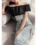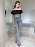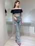 【トップス】シアーのくしゅくしゅが可愛いオフショルニットです♡肩周り伸縮性が抜群なので、肩上げて着用することもできました!ホワイトは薄いお色や肌馴染みの良い色味のインナーがオススメです! 【デニム】大好評のデニムパンツ!162cmでMサイズ着用してみました!低めのヒールですと、少し膝下があまりような感じがありました。ウエストやヒップはSサイズより2cmずつ大きくなります! 【サンダル】リボンデザインが可愛らしいローヒールのサンダルです!強いクッション性をしっかり感じやすいので、疲れにくく履きやすいです♪23.5cmの私はMサイズがちょうど良かったです!