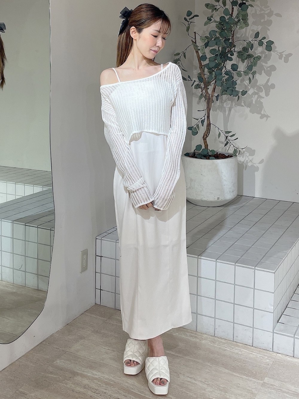 【ワンピース】Iラインの真っ直ぐなシルエットですが、細過ぎないのでゆとり持って着ていただけます!162cmで足首より10cmほど上の丈感でした◎ 【トップス】キャミ系や、タンクトップなどに重ねて着て頂くメッシュトップスです!水着と合わせても可愛いです♡ちょっとした二の腕カバーにもなるので、とても便利です! 【サンダル】履き心地が柔らかくて、ぷにっと感のある厚底サンダルです!本当に柔らかいので痛くなりにくく、ヒール初心者さんにも気に入って頂いております♡私は23.5cmでMサイズが丁度良かったです!