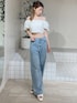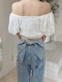 【パンツ】キレイめ好きさんにも大好評いただいているワイドデニムパンツです♡162cmでSサイズを着用してみました!丈感は丁度よくバッチリです◎アイスブルーはリボンがより分かりやすく目立つので、遠目で見ても、写真映りもバッチリ映えて可愛いです!ワイドなので、トップスはコンパクトなサイズ感ですとスタイル細身に見えてオススメです! 【トップス】涼しく、肌触りの良いコットンレース生地です!肩は上げても、オフショルでも2wayで着ていただけます◎クロップド丈なので、お腹はチラッと見えてきます! 【サンダル】履き心地が柔らかくて、ぷにっと感のある厚底サンダルです!本当に柔らかいので痛くなりにくく、ヒール初心者さんにも気に入って頂いております♡私は23.5cmでMサイズが丁度良かったです!