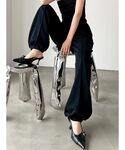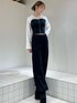 【トップス】コルセットデザインでウエストがキュッと見えるようになっています♪少しショート丈なので、ハイウエストのボトムスとの合わせがオススメです!インナーはストラップが透けるので、ストラップの無いインナーが安心です!着脱は前のジップなので、とても楽チンでした◎ 【パンツ】足首がゴムでキュッと留まるので、ダボッとした見え感を保ちつつ引きずりにくいようになっております◎ 【ブーツ】とにかく盛れます♡圧倒的な高さと軽さがイチオシポイントのブーツです!ヒールは12.5~13cmとなっており、脚長効果抜群です♡高低差が緩いので、ヒール初心者さんにもオススメです◎