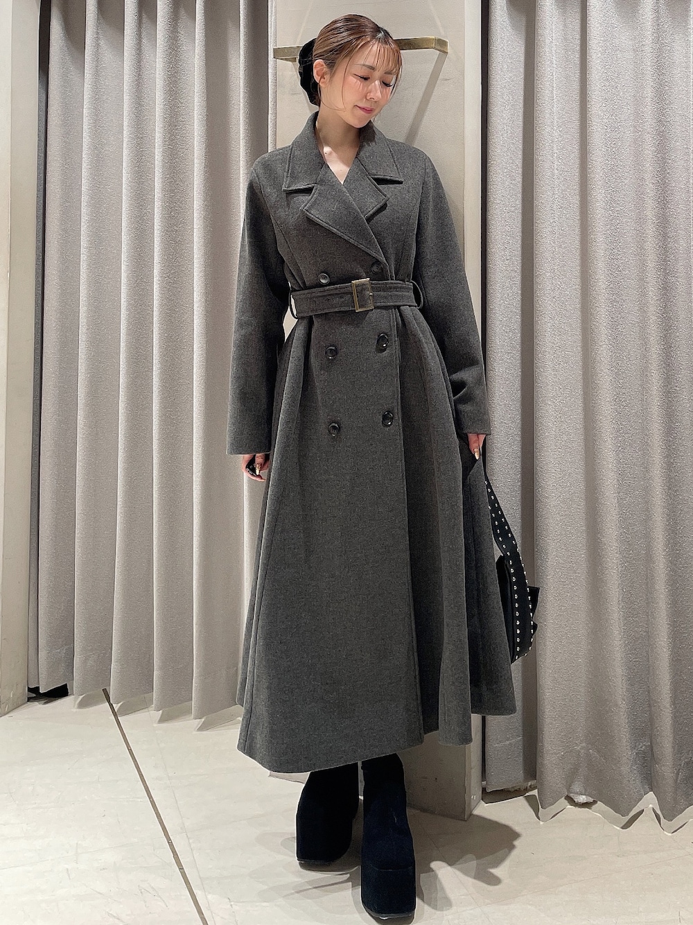 【コート】昨年大好評いただいたフレアコートが復活しました♡着用しているチャコールグレーは今季流行りのカラーで、ブラックより重たさも暗さも落ち着くので、とても使いやすい色味です!162cmでSサイズを着用しており、丈は足首より5cmほど上の丈感でした! 【バッグ】長財布入ります!横に内容量があります!ハート型のミラー付きです♡ 【ブーツ】とにかく盛れます♡圧倒的な高さと軽さがイチオシポイントのブーツです!ヒールは12.5~13cmとなっており、脚長効果抜群です♡高低差が緩いので、ヒール初心者さんにもオススメです◎